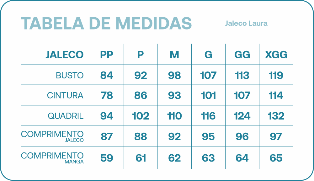 Um clássico atemporal, o Jaleco Laura combina sofisticação e conforto para te acompanhar em todos os atendimentos. Com gola padre, zíper frontal e punhos com elastano, é a escolha perfeita para quem busca praticidade sem abrir mão da elegância.