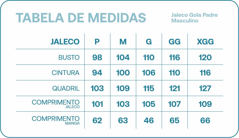 O Jaleco Masculino Gola Padre é confeccionado em tecido gabardine 100% poliéster, com tecnologia easy care, garantindo praticidade e ótimo caimento no dia a dia. Sua modelagem slim oferece um visual moderno sem abrir mão do conforto.