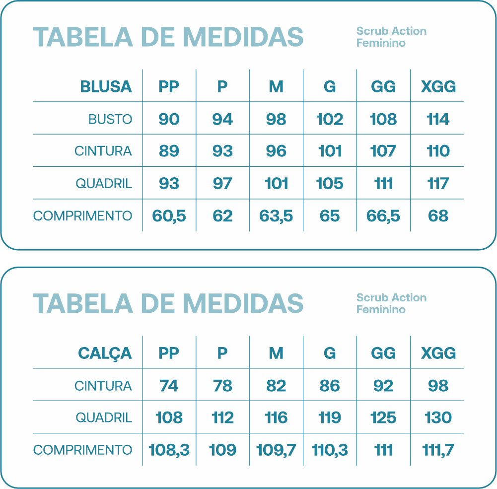 Disponível nas cores Aveia, Netuno, Super Pink e Branco, o Scrub Action é ideal para quem precisa de praticidade e versatilidade em um só conjunto. Com detalhes cuidadosamente elaborados, ele se adapta ao seu ritmo e reflete sua essência profissional.